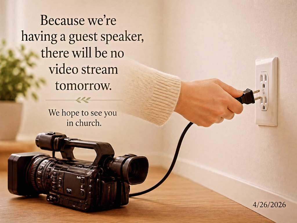 Because we’re having guest speaker, there will be no video stream tomorrow (4/26/26). We hope to see you in church.