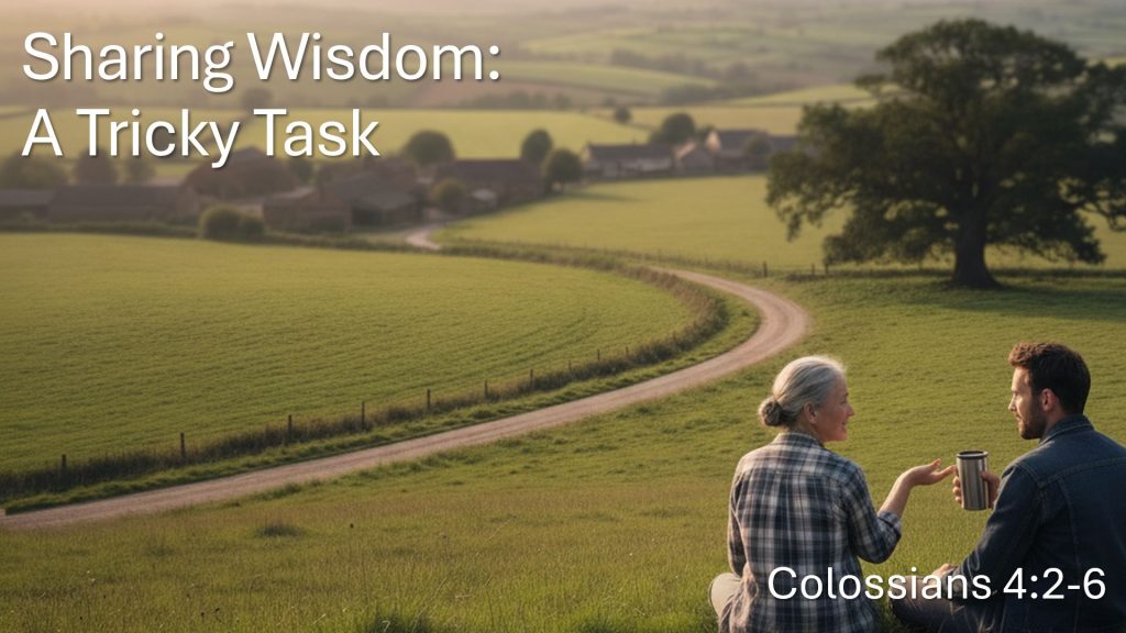 The “Be’s” of sharing wisdom. Be prepared. Be sure you have found Christ. Take time to pray. Look for needs and opportunities. Have a thankful heart. Be clear. Be wise in how we behave, how we respond and in the words we choose.